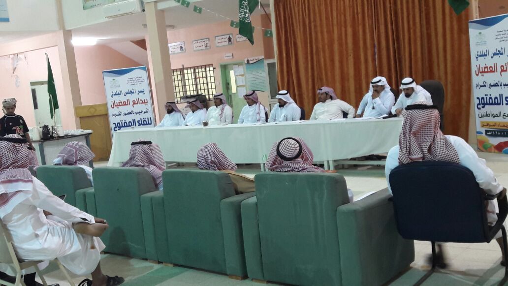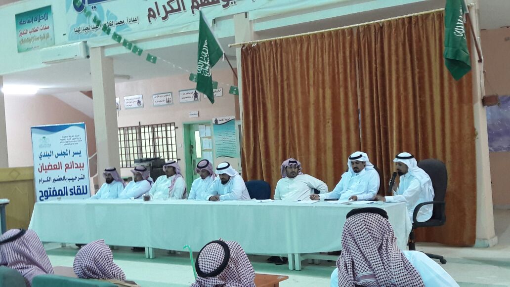كلمة افتتاحية لرئيس المجلس كلمة المجلس البلدى القاها عضو المجلس / ابراهيم عبدالله العضيانى تم فيها توضيح اهداف اللقاء المداخلات والمناقشات مع الاهلى